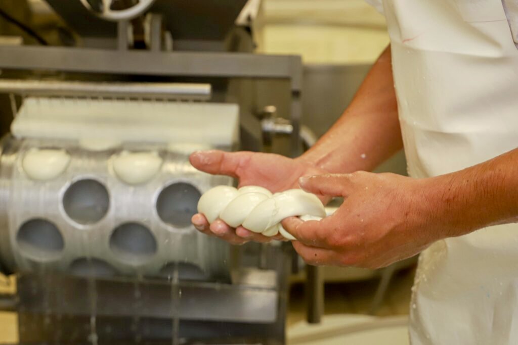 La nostra produzione si basa su una filiera corta e controllata. Il latte di bufala viene raccolto quotidianamente da allevamenti selezionati dell’area casertana e lavorato entro poche ore dalla mungitura. Ogni fase segue un processo artigianale:
